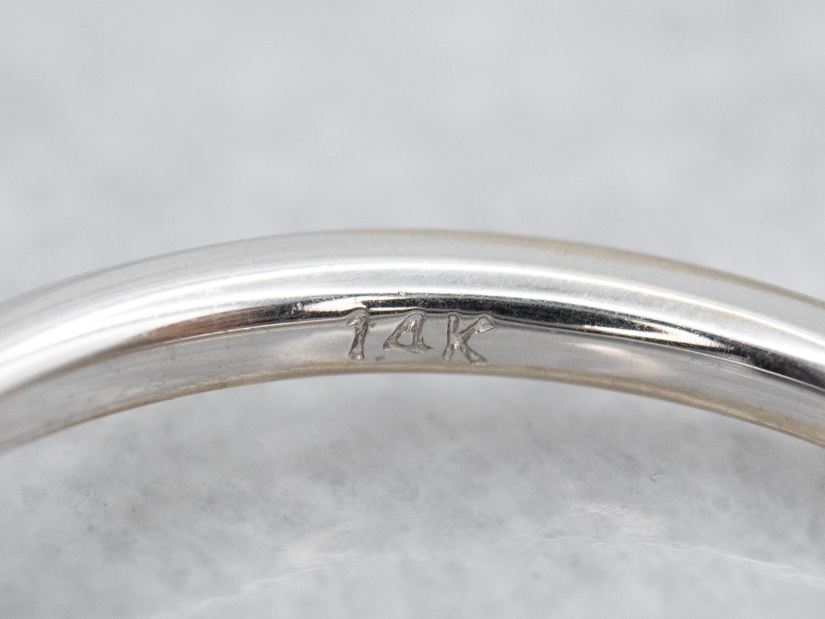 Metal: 14K White Gold Gem: Diamond .72 Carats, I in Color, SI1 in Clarity Gem Measurements: 4.6 mm, Princess Cut Ring Size: 6.25 Marks: "14K" Stamped on the inside band
