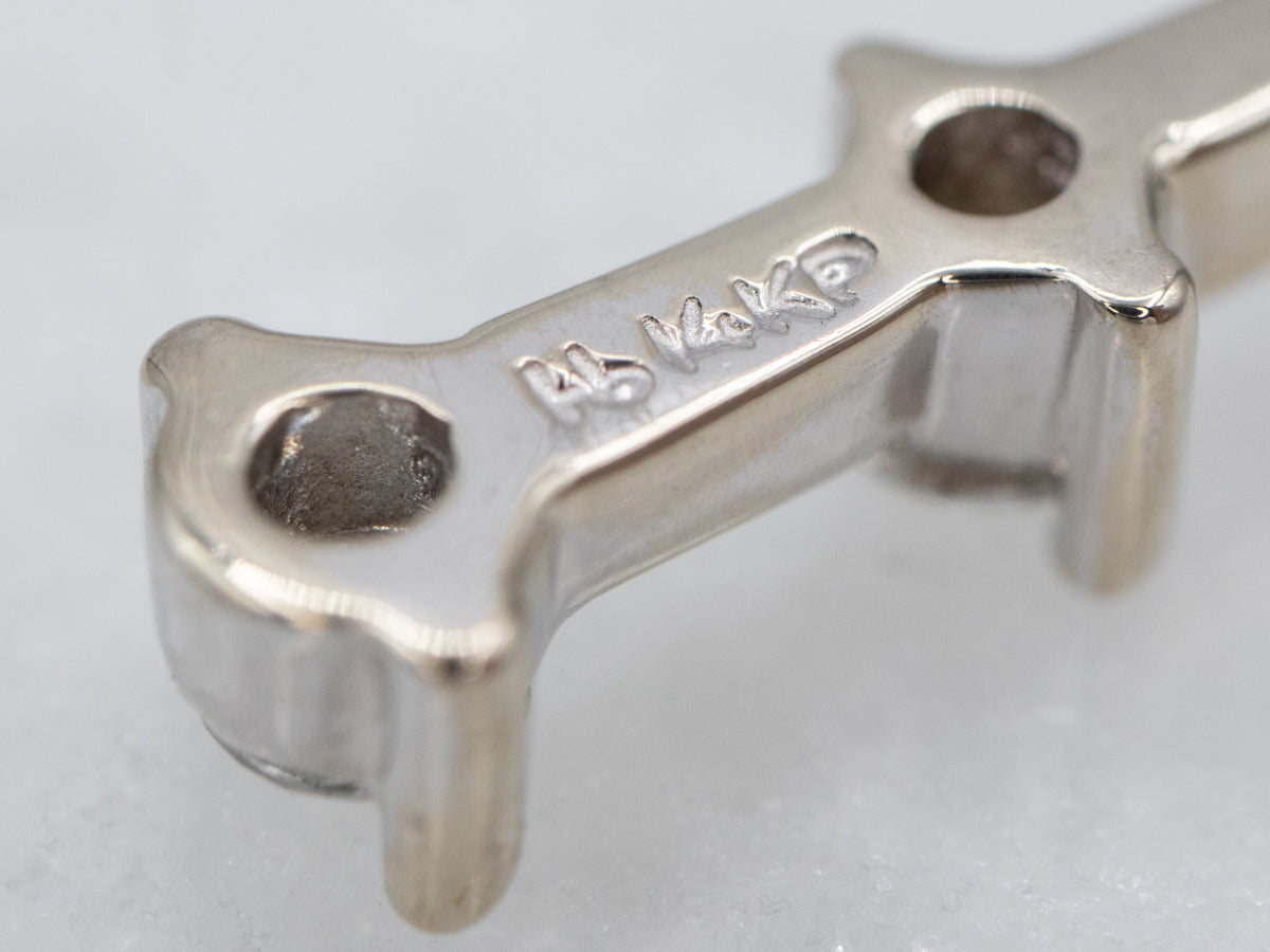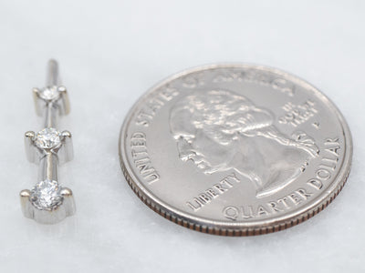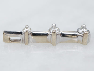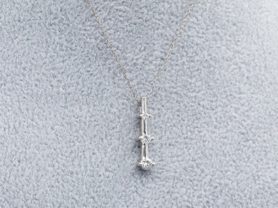 Metal: 14K White Gold Gem: 3 Diamonds totaling .25 Carats, VS2 in Clarity, H in Color Gem Measurements: 2.7 mm, Round Measurements: 22 x 5 mm, with bail Marks: “14KP” Stamped on the reverse