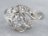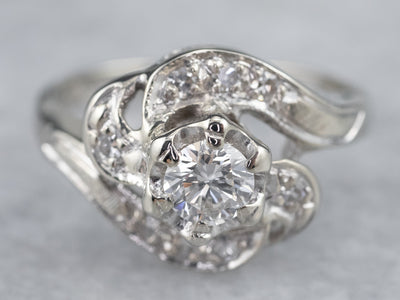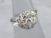What a sight! This brilliant white gold mounting is a sight to behold, completely covered in diamonds and yet not at all ostentatious. This ring carries with it all the class of the Hollywood Regency and the stars of the silver screen during the heyday of elegant movie stars. The diamonds are bright and eye-catching, of good quality, and ready to be worn and admired for decades more to come.