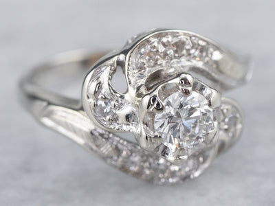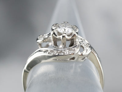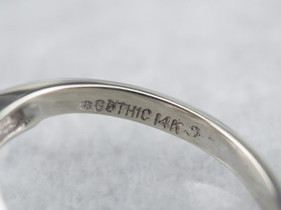 Metal: 14K White Gold Gem: Diamond .22 Carats, VVS in Clarity, G in Color Gem Measurements: 4.1 mm, Round Accents: 8 Diamonds totaling .08 Carats, VVS in Clarity, G in Color Ring Size: 4.25 Marks: “GOTHIC 14K” Stamped on the inside band