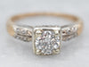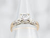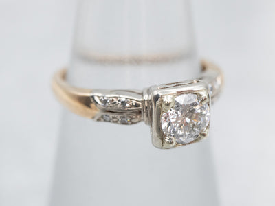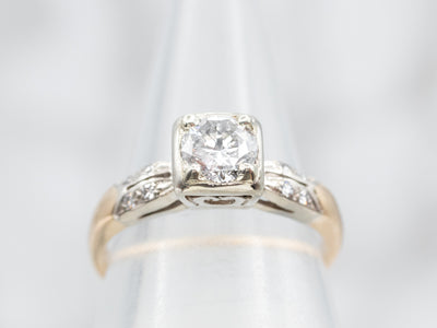 Metal: 14K Yellow and White Gold Gem: Diamond .55 Carats, I2 in Clarity, H in Color Gem Measurements: 5.0 mm, Round Accents: 8 Diamond totaling .04 Carats, SI-I in Clarity, H-I in Color Ring Size: 4.50 Marks: "14K" Stamped on the inside band