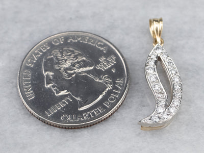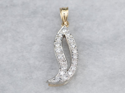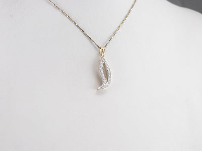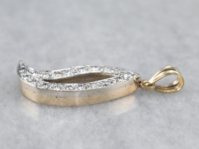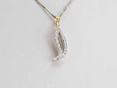 The sweeping diamond design of this pretty pendant is an excellent complement to the polished gold. Whether paired with a simple blouse or a little black dress, this pendant remains classy and sophisticated.