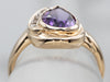 Here we've taken a vintage gold and champagne diamond mounting and set it with our own stone! This is a wonderful gem, an amethyst with precise faceting and with rich, deep color. The teardrop, pear-shaped cut reflects a great deal of light from within the stone! This luxurious piece will transition well from office to evening!