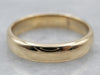This simple yellow gold band features a smooth inside and domed top. This is comfortable to wear, and the balanced silhouette that makes for a nice profile on the hand. This can be worn with a variety of engagement rings, or stacked with other bands!