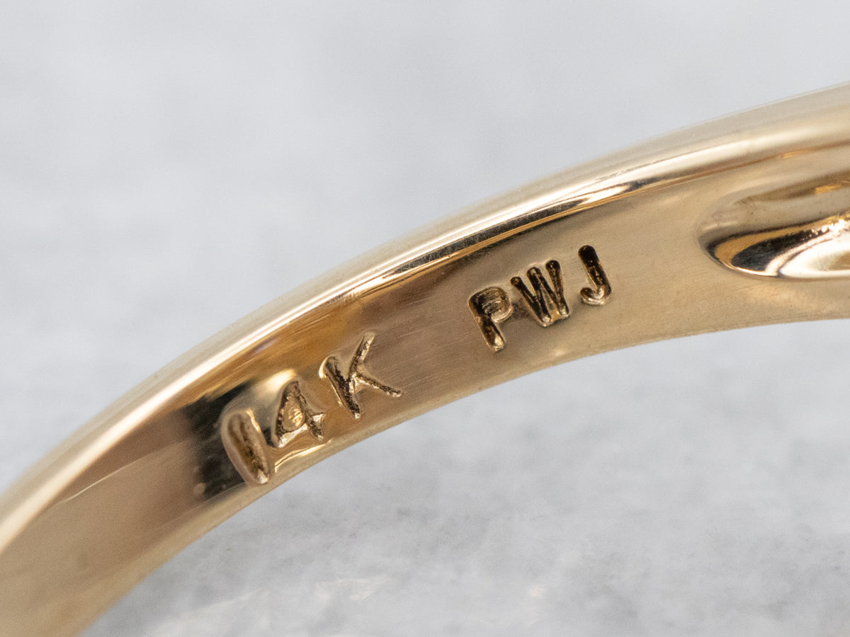 Metal: 14K Yellow Gold Gem: Tanzanite Gem Measurements: 6.0 x 3.4 mm, Marquise Cut Accents: 28 Diamonds totaling 0.69 Carats, I in Color, SI in Clarity Ring Size: 6 Marks: "14K PWJ" Stamped on the inside band