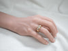 This classic vintage engagement ring set with a stunning set of old European cut diamonds in its center, simple and traditional, crafted from 14 karat yellow gold. The three stones represent the past, present, and future. This will look well with a variety of wedding bands, from the ornate to the simple!