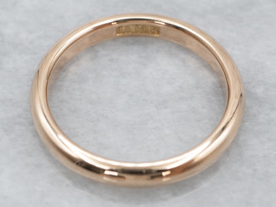 Simple and subtle, this antique band features a low dome on top and a handsome, soft polish. The profile and finish are completely undecorated, giving this piece a nice profile to wear next to a variety of pieces!