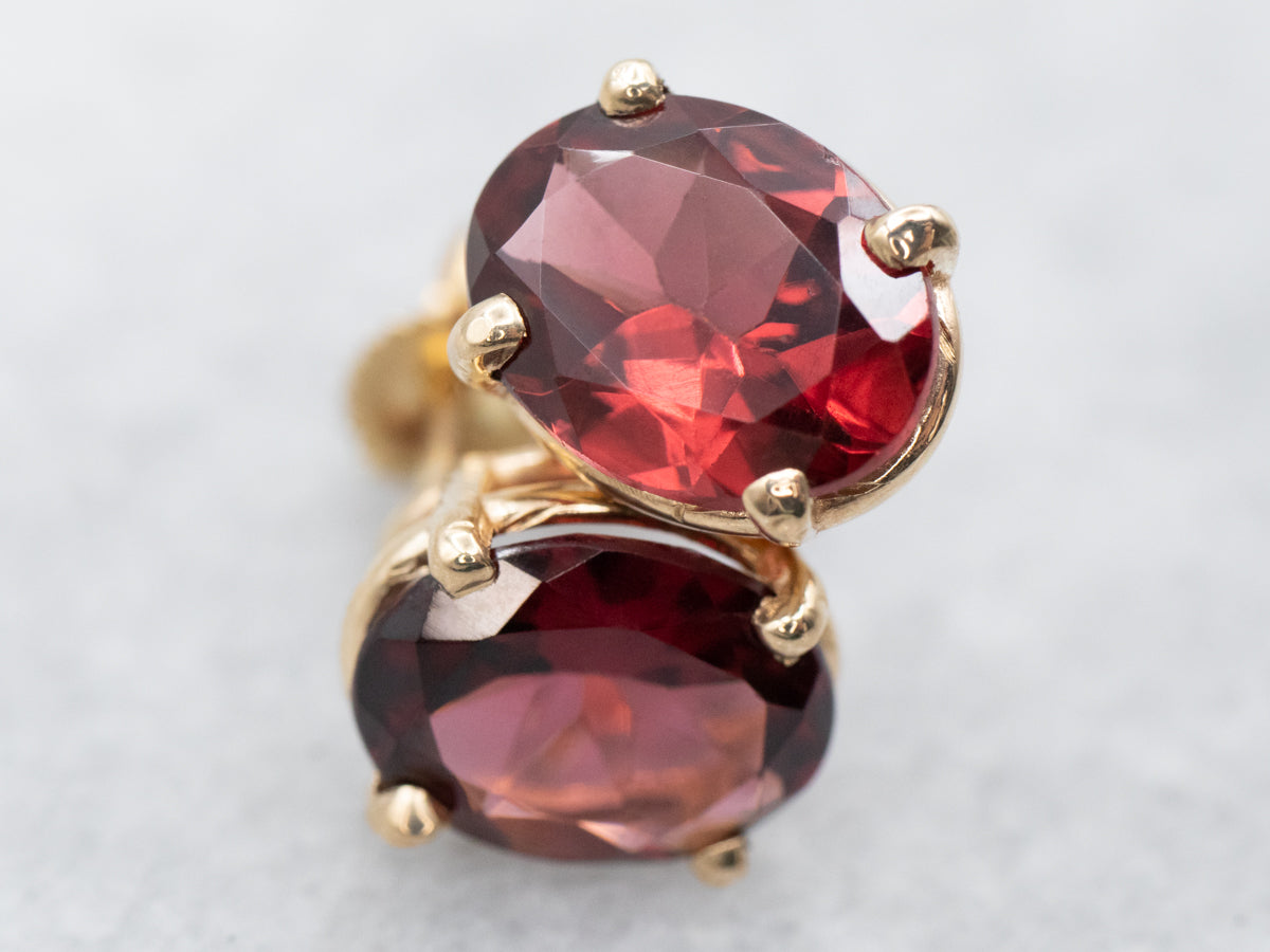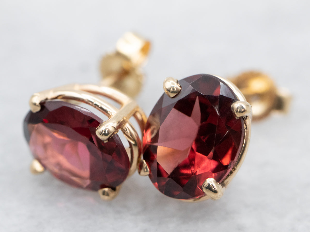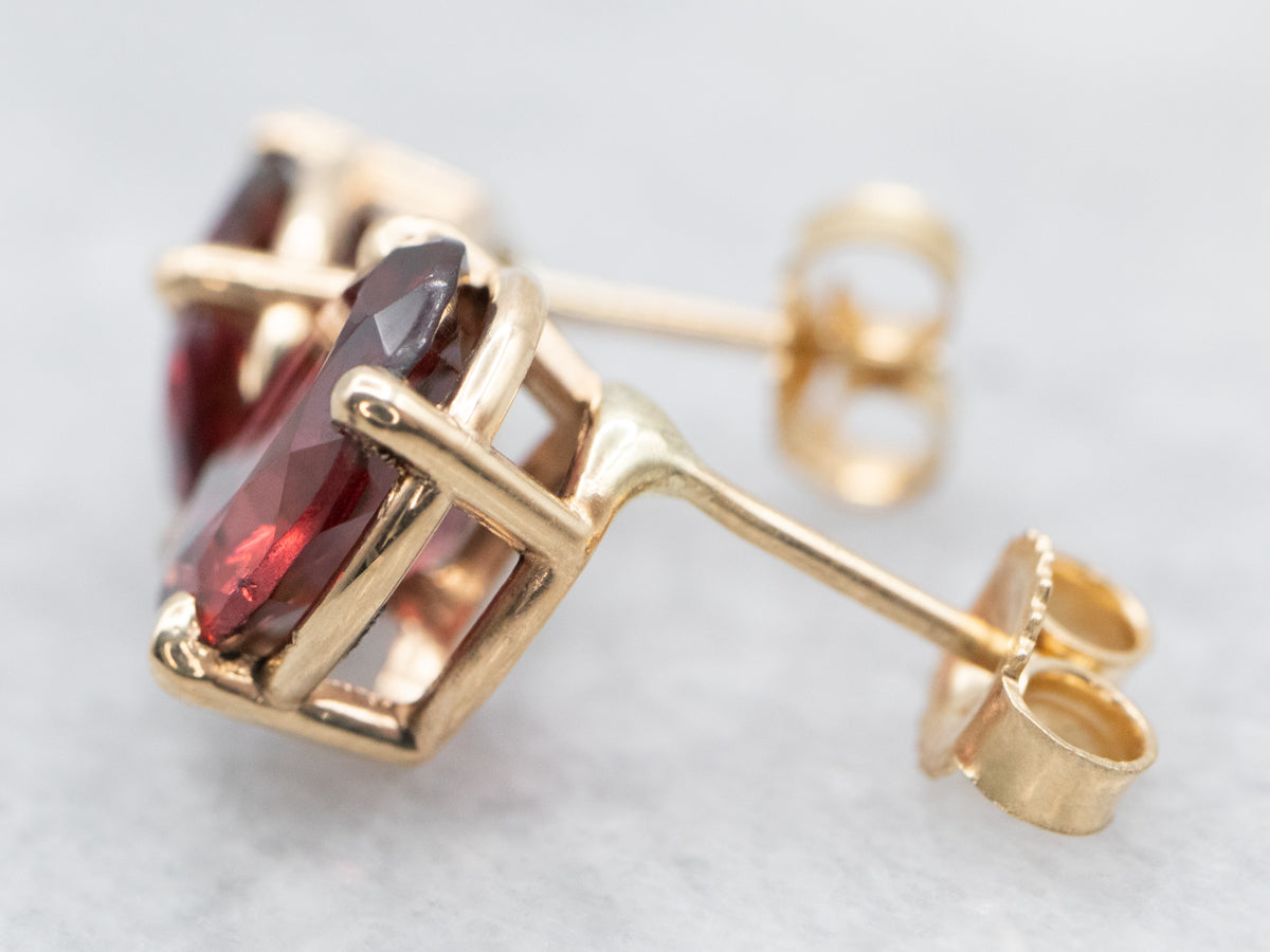 These stunning garnet gems burst with color and vibrancy. These are yellow gold, a lovely compliment to the glowing red garnets that sit at their center!