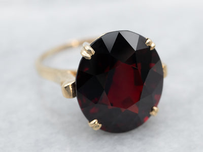 Metal: 14K Yellow Gold Gem: Pyrope Garnet 18.40 Carats Gem Measurements: 17.4 x 15.0 mm, Oval Ring Size: 11 Marks: “14K” Stamped on the inside band