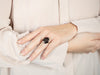 This ring features a simple and classically designed mounting, the structural openwork shoulders lend a sense of light and grace to the mounting. Cut into a classic oval cut, the deep red cherry garnet in the center adds a lovely pop of color and also an interesting shape to a simple ring!