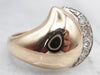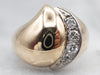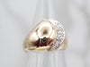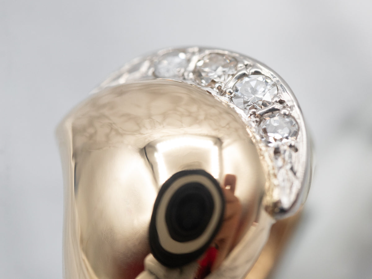We love the versatile style of this vintage ring! A smooth domed top, this presents a solid profile on the hand, without being overwhelming to wear. Bright diamonds are inlaid, flush to the surface, giving the top of the ring a wonderful sparkle!
