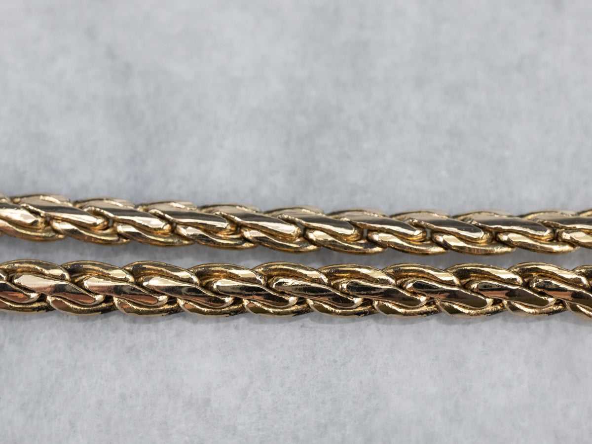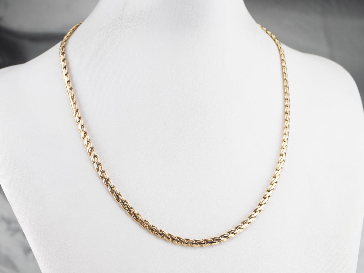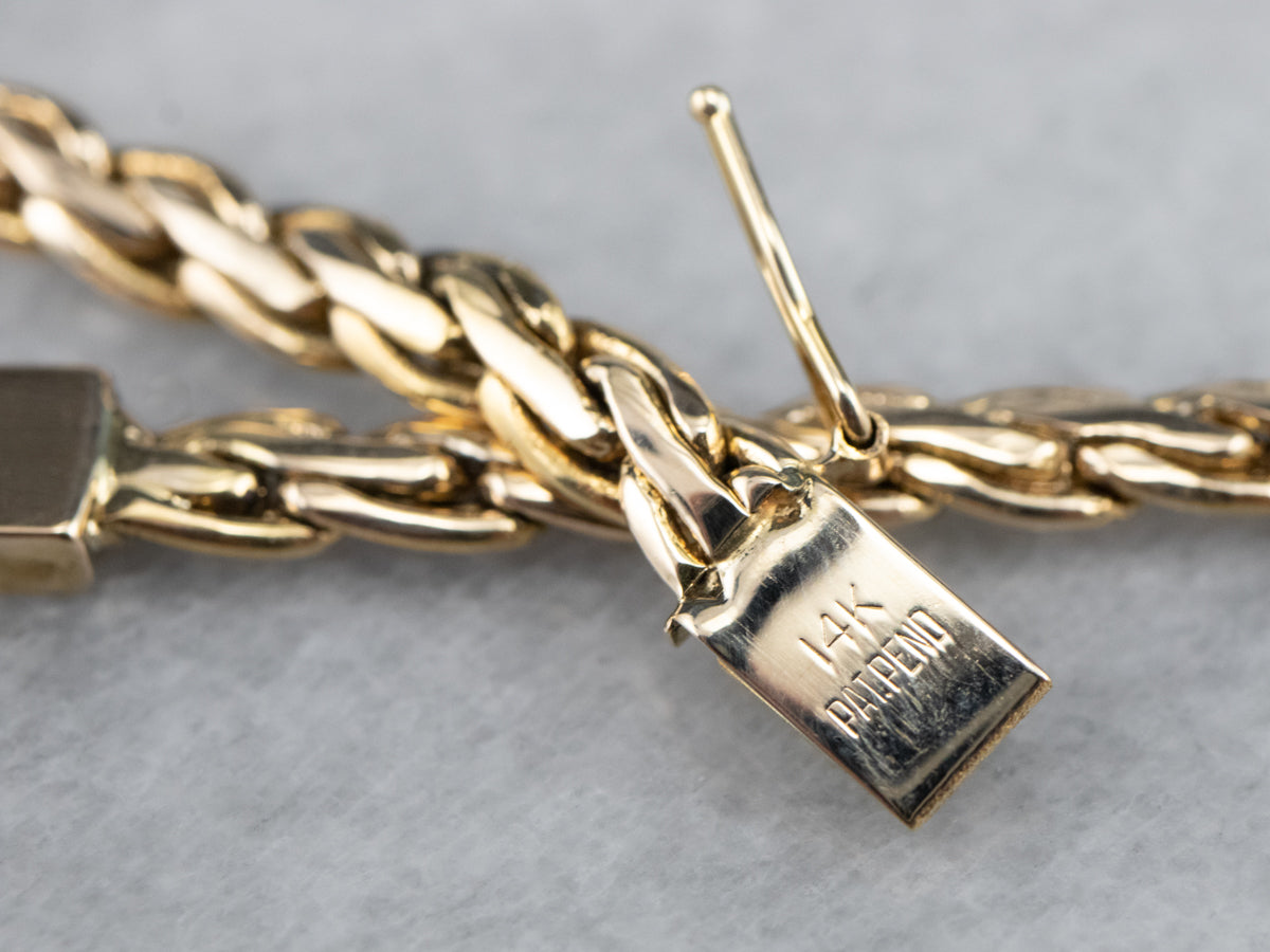 Metal: 14K Yellow Gold Width of Chain: 3.9 mm Length of Chain: 18 Inches Marks: “14K Pat. Pend” Stamped on the clasp