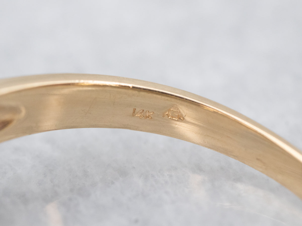 This is the ultimate classic, and reminiscent of Princess Kate’s ring, the iconic sapphire halo engagement piece that was first worn famously by Lady Diana. A beautiful midnight blue sapphire adorns the center with a precise, flashing cut, surrounded by a halo of diamonds! The glittering stones are all set into classic yellow gold and held by a lovely tapered wide yellow gold band that encircles the finger.
