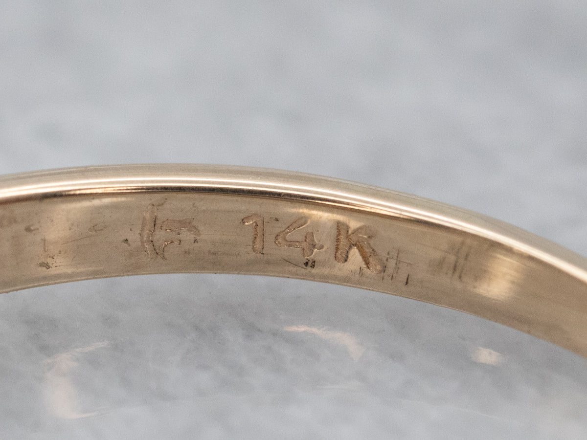 Metal: 14K Yellow Gold Gem: Diamond .21 Carats, VS2 in Clarity, G in Color Gem Measurements: 4.1 mm, Round Ring Size: 5.50 Marks: “14K” Stamped on the inside band