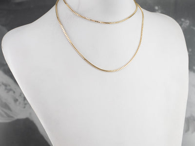 This box chain is a must-have jewelry staple! Box chains are sturdy, while still being fluid and comfortable to wear. This piece is easy to dress up or down, add a pendant, or layer with other necklaces!