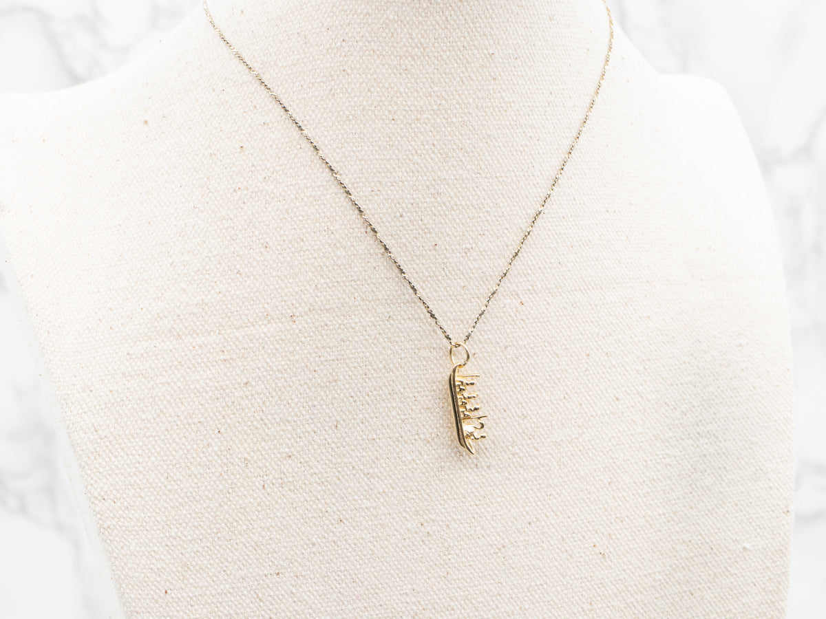 Metal: 14K Yellow Gold Measurements: 25 x 8 mm, with bail Marks: “14K” Stamped on the reverse
