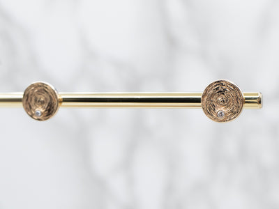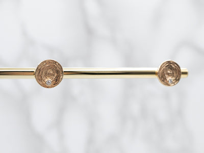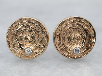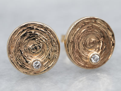 Organic and naturally formed, these rich 14-karat yellow gold stud earrings look like textured tree rings! Set with sparkling diamonds these earrings are beautiful, a great pair of everyday earrings!