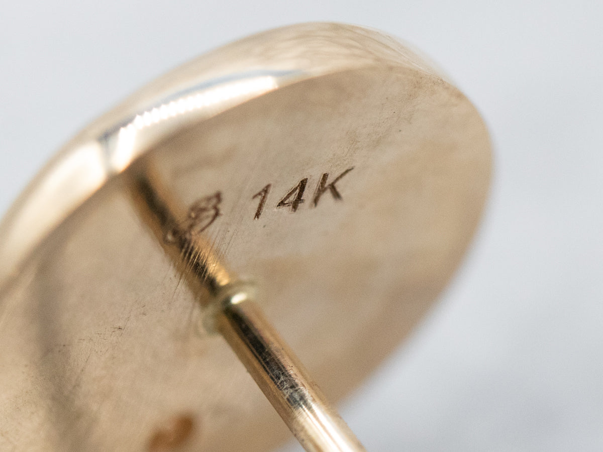 Metal: 14K Yellow Gold Gem: 2 Diamonds totaling .05 Carats, SI1 in Clarity, H in Color Gem Measurements: 1.4 mm, Round Earrings Length: 10 mm Earrings Width: 10 mm Marks: “14K” Stamped on the Findings