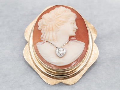 Vintage Gold and Diamond Cameo Pin or Pendant