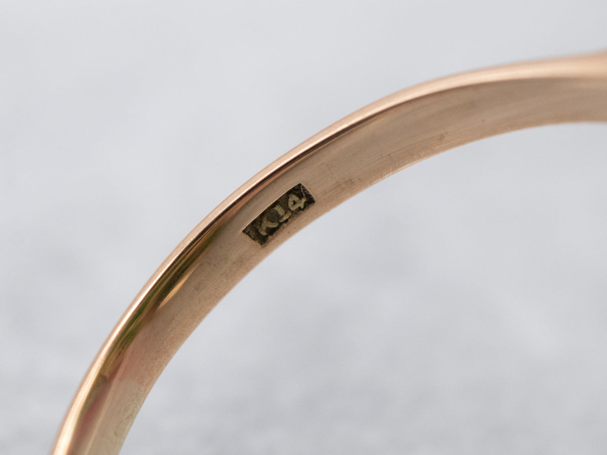 This stunning jade cabochon is carved with swirling botanical motifs, with pierced details continuing all the way through the gemstone letting the color of the skin beneath the ring show through the stone just a bit. This style, common to the Retro Era, is a light and airy profile on the hand, suitable for daily wear with any outfit!
