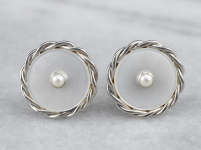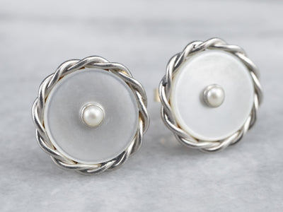 We created these unique mother of pearl and seed pearl stud earrings by converting vintage, the 1940s - 1950s era cufflinks into amazing one-of-a-kind stud earrings!