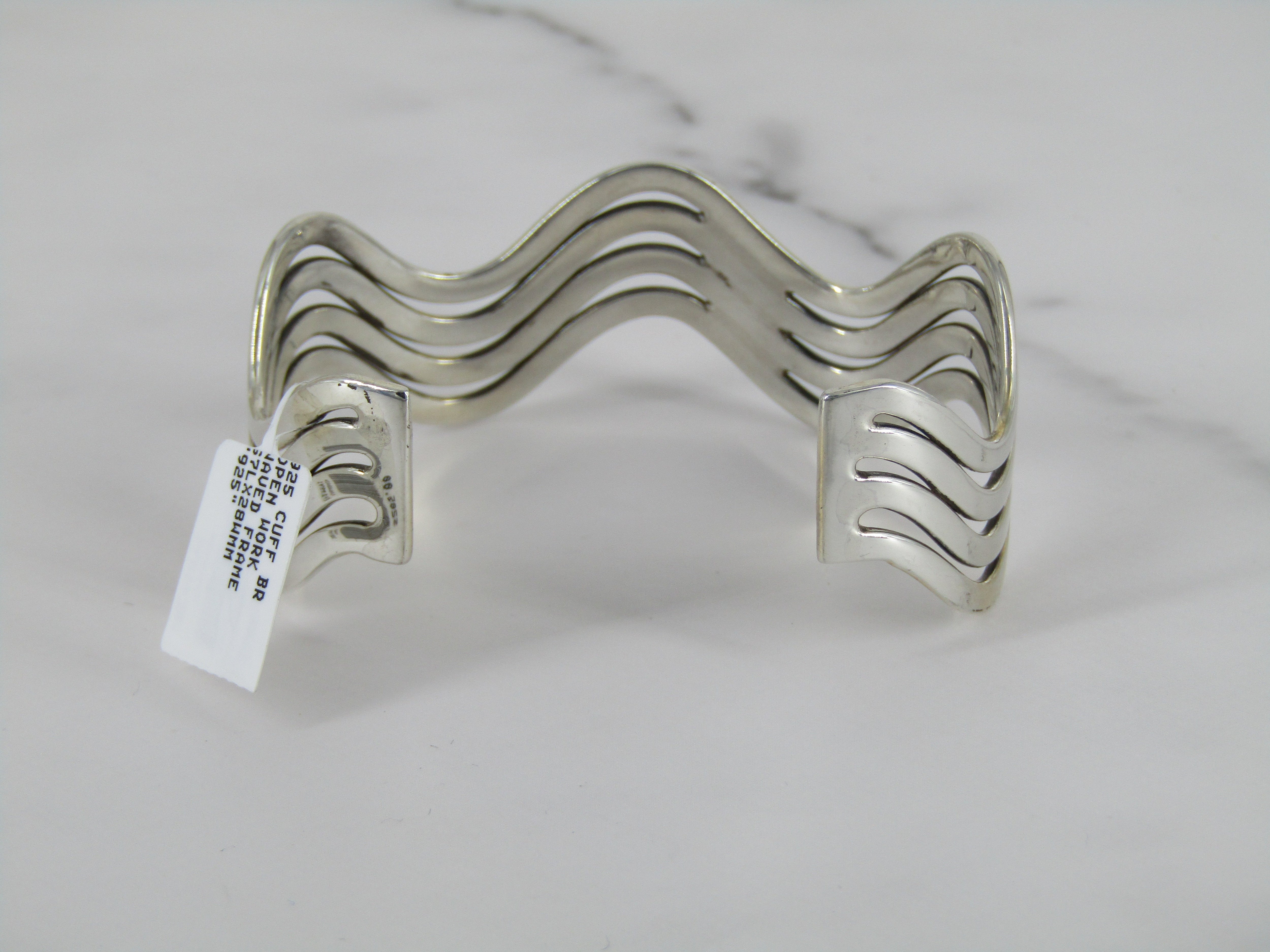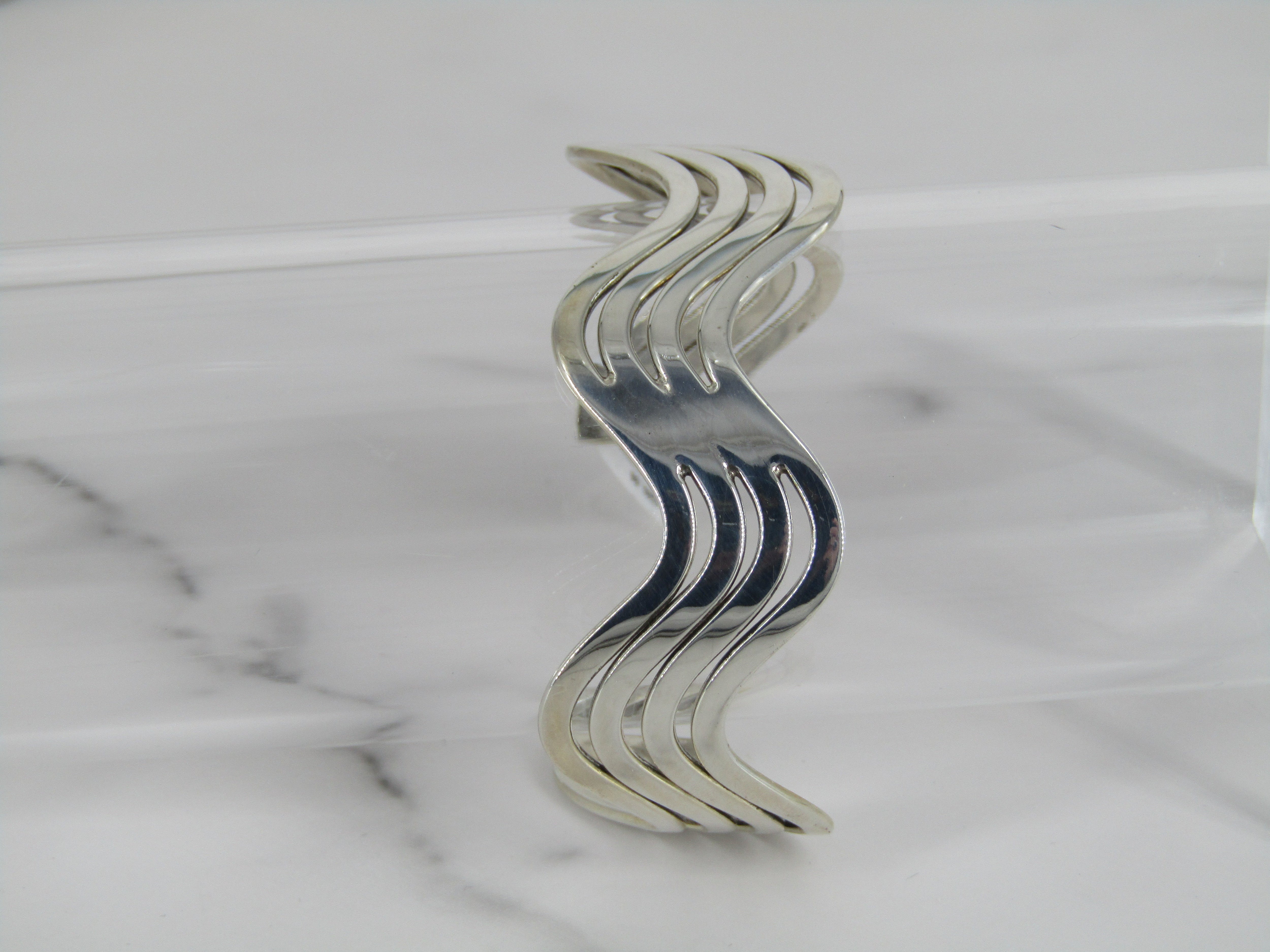 Sterling Silver open work cuff bracelet with smooth, waved frame.