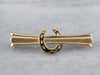 This vintage bar pin is a must have for an equestrian lover! A lucky horseshoe is the centerpiece, with a grooved bar design adding lovely texture. Crafted from 18k gold, this pin has a rich luster to it.