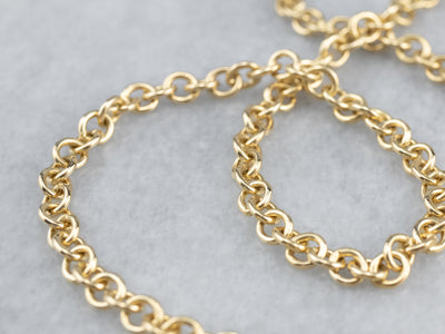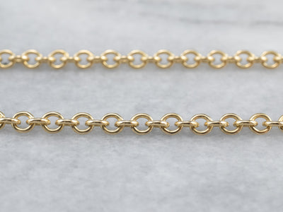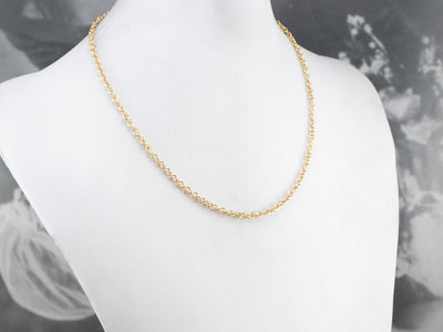 This 18 karat yellow gold 16-inch chain is made up of small round links, a classic style that brings balance to the length of the chain. Ready to wear alone or with a pendant, this is a great piece for layering!