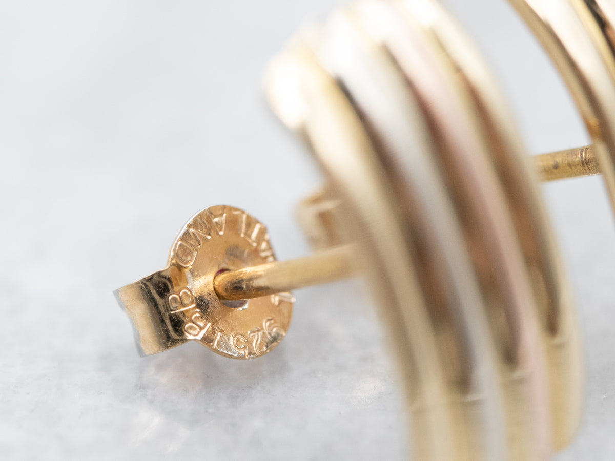 These sleek vintage drop earrings are crafted of 18-karat white, rose, and yellow gold. The post-back findings keep the earrings secure, allowing these to become your new go-to favorites!
