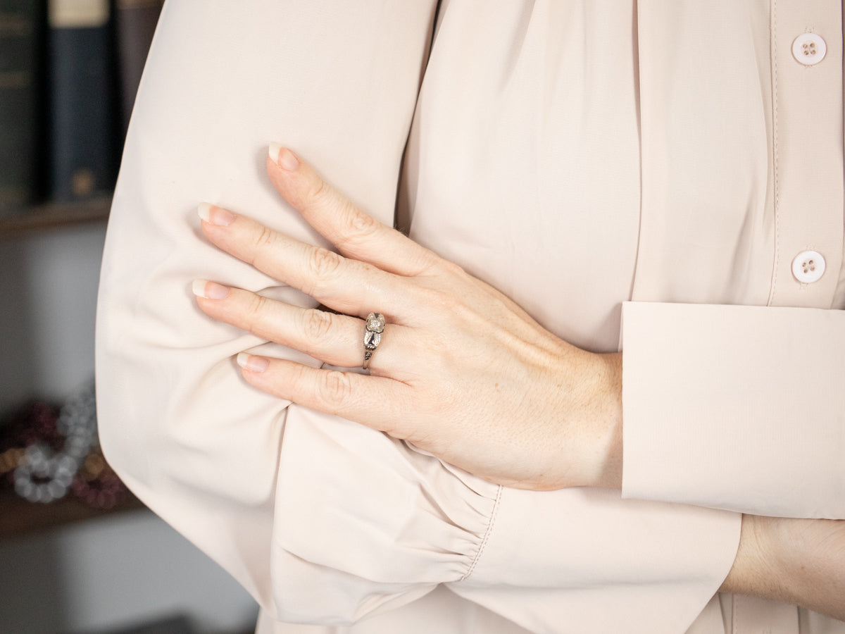 Floral Art Deco Diamond Engagement Ring