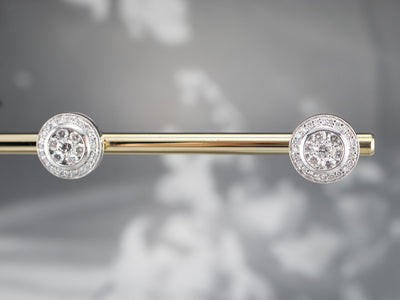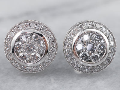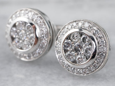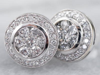These stunning 18-karat white gold diamond stud earrings are bright and dazzling! The gems are clustered in a halo shape that sparkles from every angle. Modern and elegant, these earrings are a great addition to any jewelry collection!