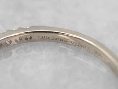 Metal: 18K White Gold Gem: 22 Diamonds totaling .22 Carats, VS in Clarity, F-H in Color Width of Band: 1.9 mm Height off Finger: 1.8 mm Ring Size: 6.5 Marks: “18K JUST PERFECT .22CT 326009” Stamped on the inside band