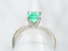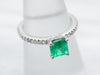 Metal: 18K White Gold Gem: Emerald .82 Carats Gem Measurements: 5.4 x 5.3 mm, Emerald Cut Accents: 24 Diamonds totaling .20 Carats, VS in Clarity, G in Color Ring Size: 5.50 Marks: “18K” Stamped on the inside band