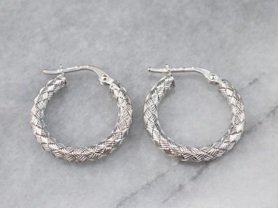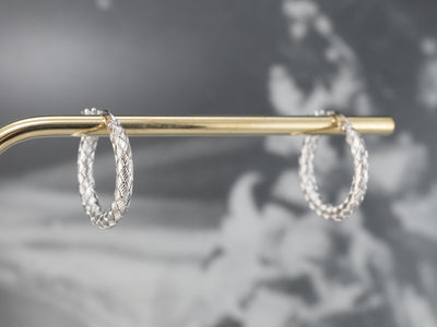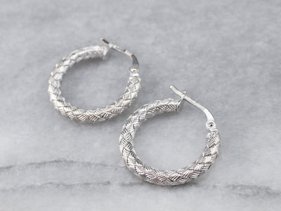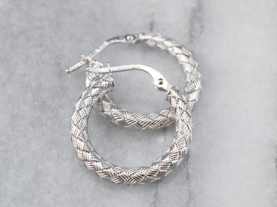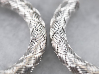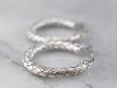 18K White Gold Woven Hoop Earrings