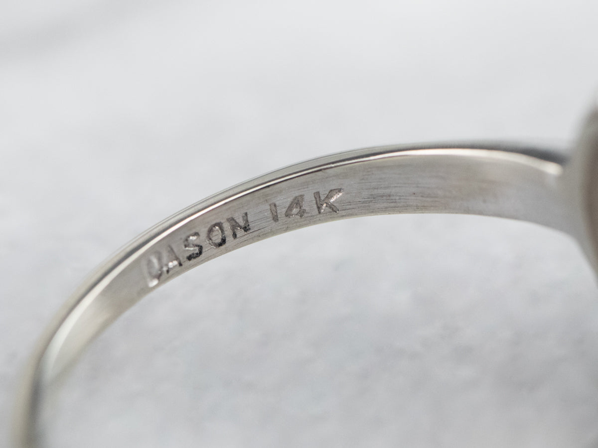 Metal: 14K White Gold Gem: Diamond .13 Carats, SI1 in Clarity, H in Color Gem Measurements: 2.8 mm, Round Accents: 16 Diamonds totaling .32 Carats, SI1 in Clarity, H in Color Ring Size: 5.50 Marks: "DASON 14K" Stamped on the inside band