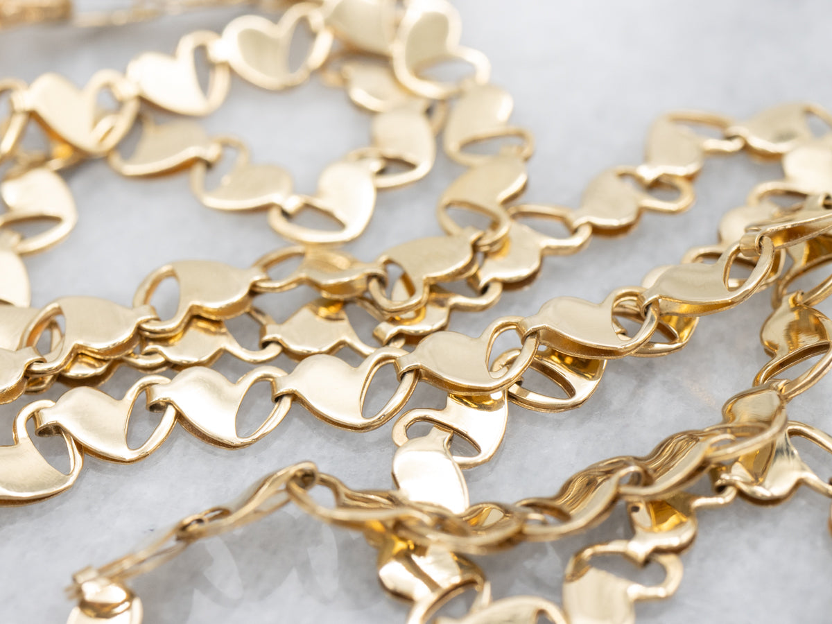 Crafted from luxurious 14-karat yellow gold, this exquisite heart link necklace is adorned with five beautifully cut heart-shaped blue topaz gemstones at its center. The vibrant blue hues of the topaz contrast elegantly with the warm gold, creating a timeless piece that enhances any ensemble.