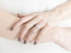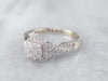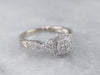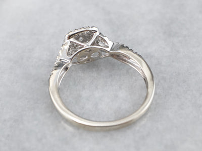 Although thoroughly modern, the slim lines and diamond-encrusted aura of this setting have a definite Edwardian Era aura! Glittering from every angle, the small size of the accent diamonds keep the piece from being ostentatious, instead simply accenting the beauty of the cluster of diamonds at its center. A wonderful combination of classic lines and contemporary style, this lovely ring will make a wonderful engagement piece for a lady who loves glitter with a sophisticated air.