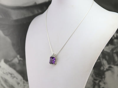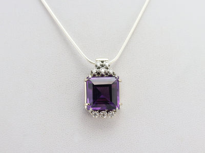 This is a gorgeous, deep purple amethyst! Deep plum in color, this stone sparkles with a rich inner fire. Amethyst is the birthstone for the month of February, and what a fantastic birthstone pendant this will make! This is a one of a kind pendant that we've created using the face of a vintage diamond retro era watch.