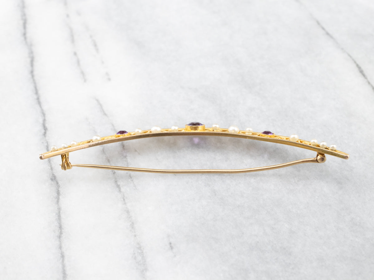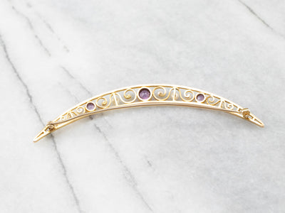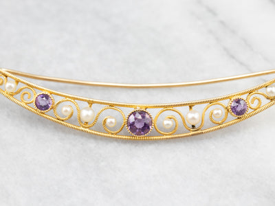 Amethyst and Pearl Crescent Moon Brooch