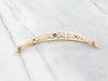 The crescent moon, ever so romantic, is a wonderful design and timeless motif. Representing the Goddess Diana, this hearkens back to classical Greek and Roman design. Violet hued amethysts and milky pearls give this piece a feminine look, and pair beautifully with the scrolling polished gold.