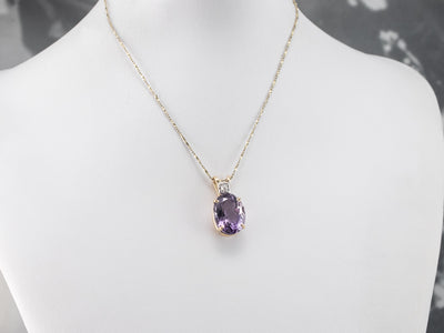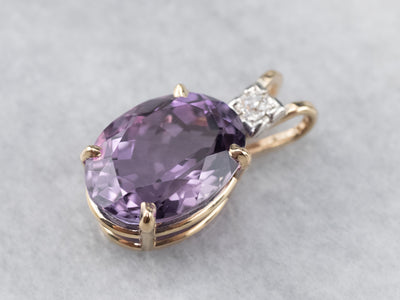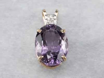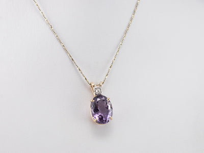 Stylish and refined, this pendant is perfect! The amethyst has a great light and an amazing cut that really makes it glow from within. Accented by a bright, glittering diamond, this easy to wear pendant transitions smoothly from day to evening.