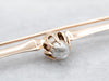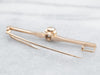 Dating to the late 1800s, this bar pin is simple but luxurious. The 14-karat gold has a warm, coppery patina which is a perfect accent for the glass pearl at the center, this is a classic piece from a bygone era!