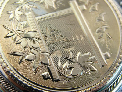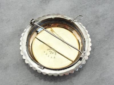 Here we've taken two antique pieces and combined them in to a single unique element! The base of this pendant is a beautiful antique sterling piece. We've overlaid that frame with the cover of an antique gold pocket watch dating to the early 1900s or late 1800s.
