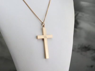 Dating to the late 1800s, this antique cross is sized perfectly for an adult, a bold but simple piece that will look appropriate on either a gentleman or a lady. We love that this piece is all original and still maintains its soft scrolling monogram even after 100 years!
