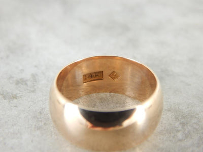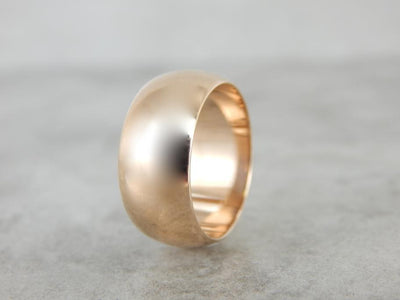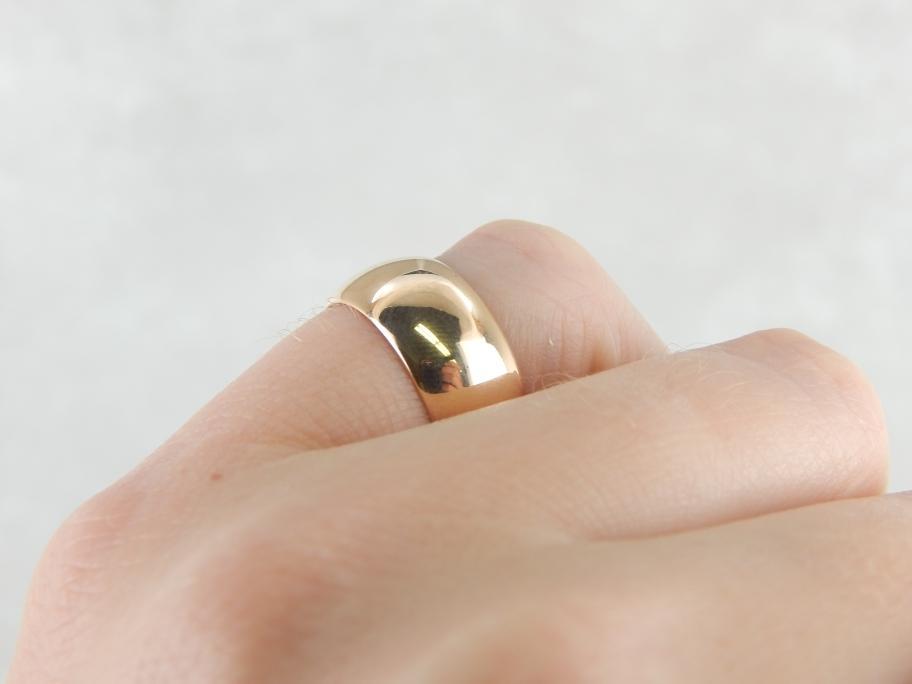 This Victorian wedding band is beautiful in it's simplicity. It's of a large size, suitable for a man or a woman, with a rosy pink hue. Ready to engrave inside or out, this antique piece has a wonderfully soft feel on the finger.
