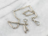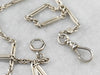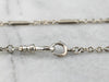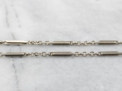This Art Deco chain was originally designed to hang pocket watches off of, but you could also wear it wrapped around your wrist as a bracelet! Alternating textured bar links and cable chains form a lovely pattern and shine with a soft patina, crafted of 14 karat white gold.
