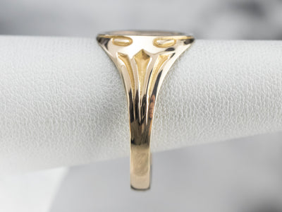 The bold type monogram on this vintage signet ring was so well done, we opted to leave it be and hope that we found someone with the initials "HTE" who loves it as much as we do! Even if you have different initials, the stylized font stands on its own as a decorative design and compliments the motifs on the ring's shoulders beautifully.
