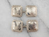 These Art Deco cufflinks have an impressive amount of detail! Adorned with ornate motifs, both brushed and polished finishes, and architectural style edging, these cufflinks are stately and refined. This set would make a great Father's Day or Groomsman gift!