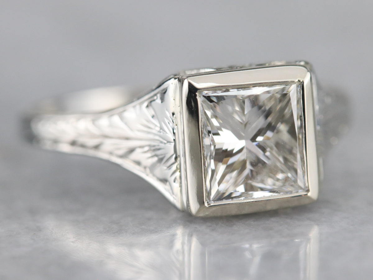 Art Deco Princess Cut Diamond Solitaire Engagement Ring
