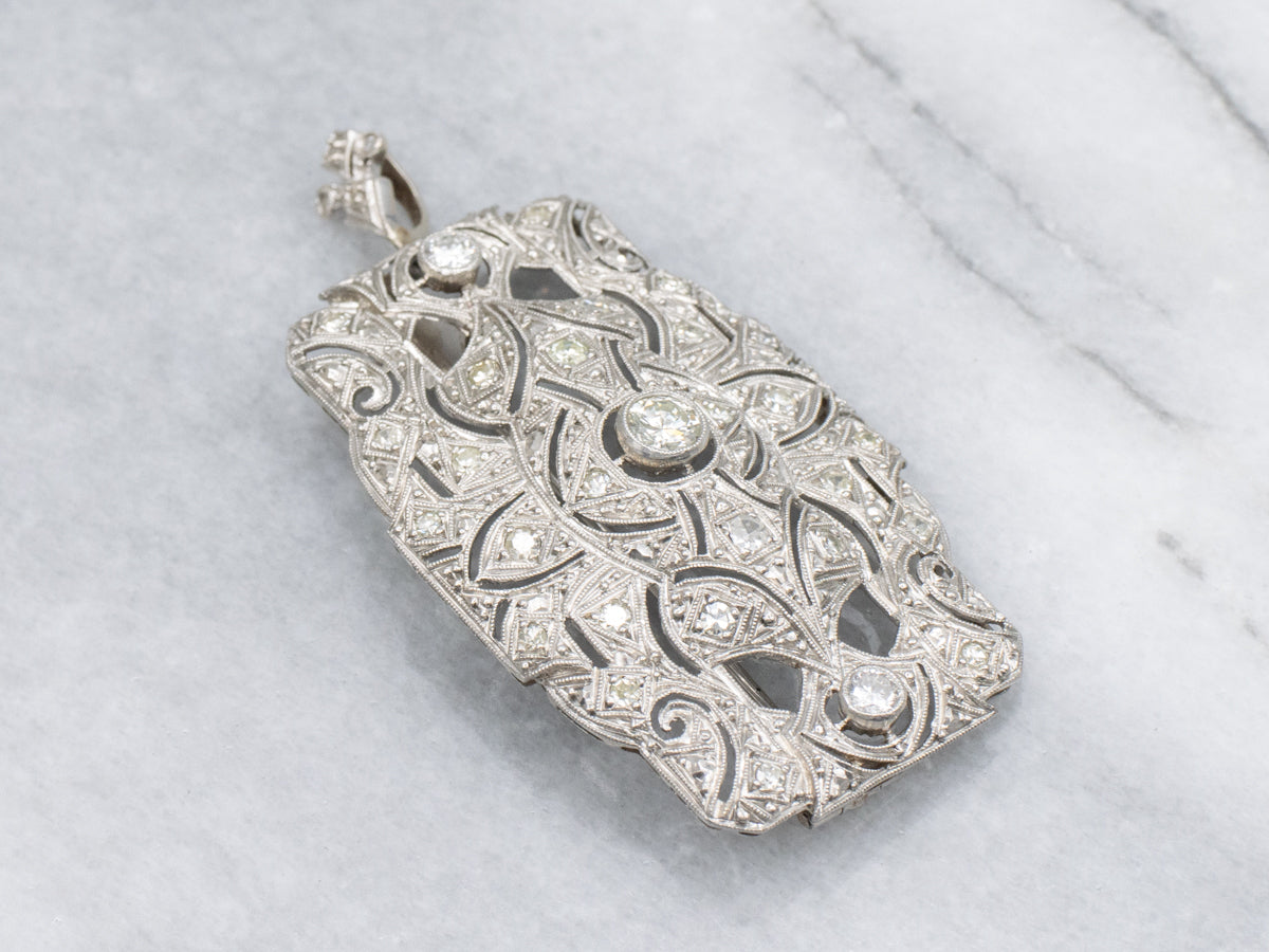 Edwardian Era Platinum and Diamond-Encrusted Brooch or Pendant